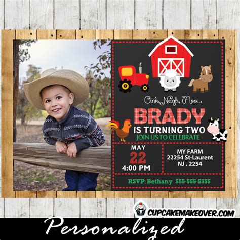 Farm Photo Birthday Invitation, Barn Wood Personalized ...